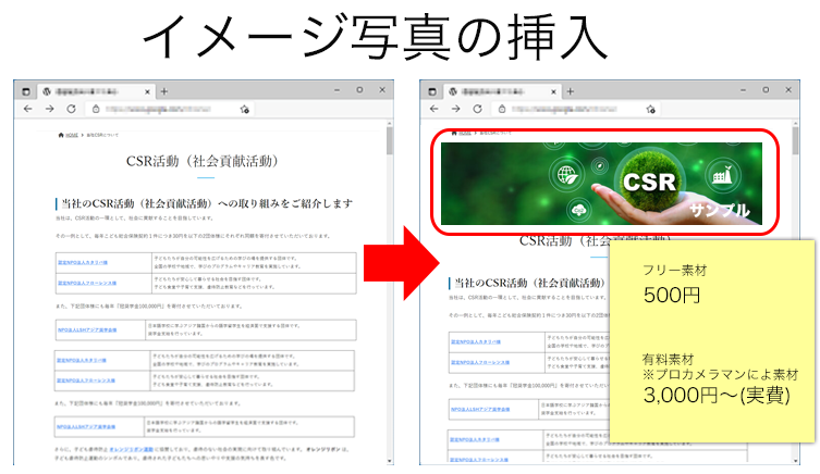 テストページを作ってご確認いただき了解を得てから掲載いたしますのでご安心ください。 - 掲載するイメージ写真などの用意が出来ません。