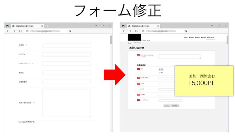 具体的な修正内容をお伝えいただきましたら、お見積りをご連絡させていただきます。
